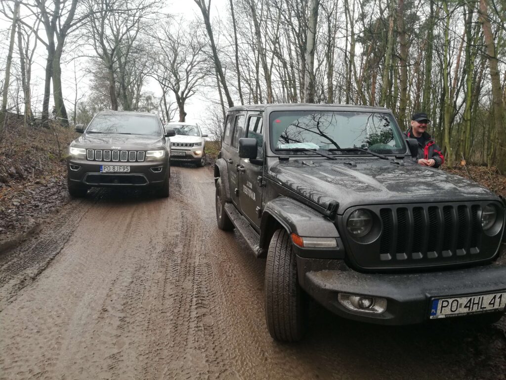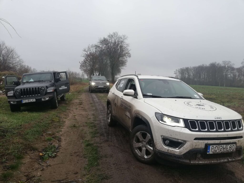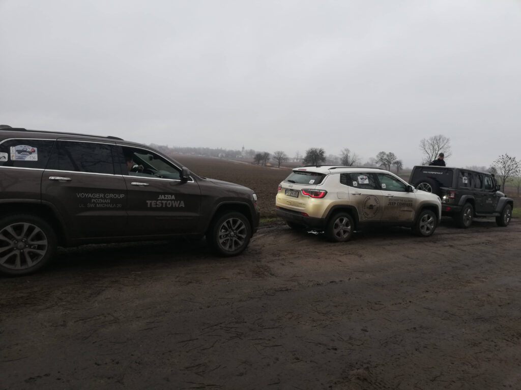 Nasz Voyager’owski team dumnie reprezentowały 3 załogi. Na co dzień czyścioszki: Jeep Wrangler, Jeep Grand Cherokee oraz Jeep Compass doskonale odnalazły się w deszczowej aurze i nie omijając błotnych kałuż przybrały ulubione barwy Jeepa.